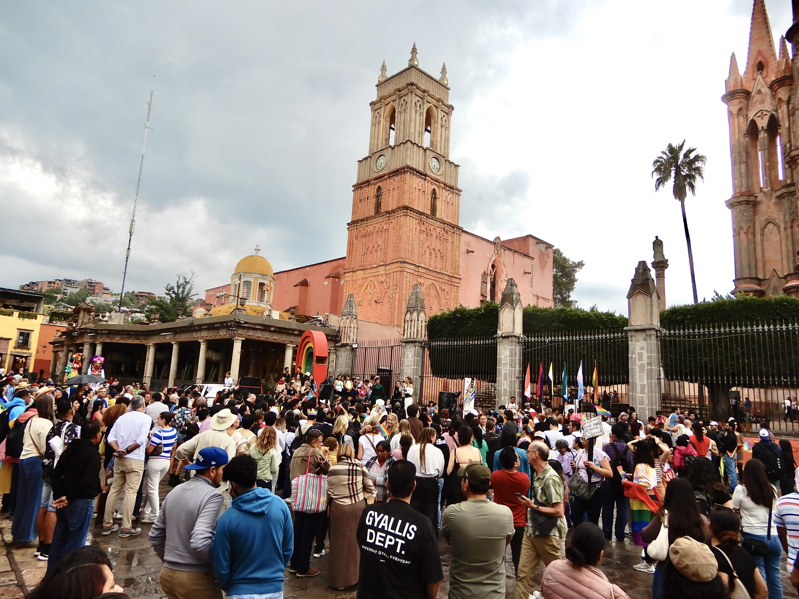 Las calles de San Miguel de Allende se llenan de color y alegría durante la Marcha del Orgullo. Una marcha que cuenta con la participación de cientos de personas, incluyendo miembros de la comunidad LGBTQ+, aliadas, organizaciones locales y visitantes de otros municipios y estados vecinos.